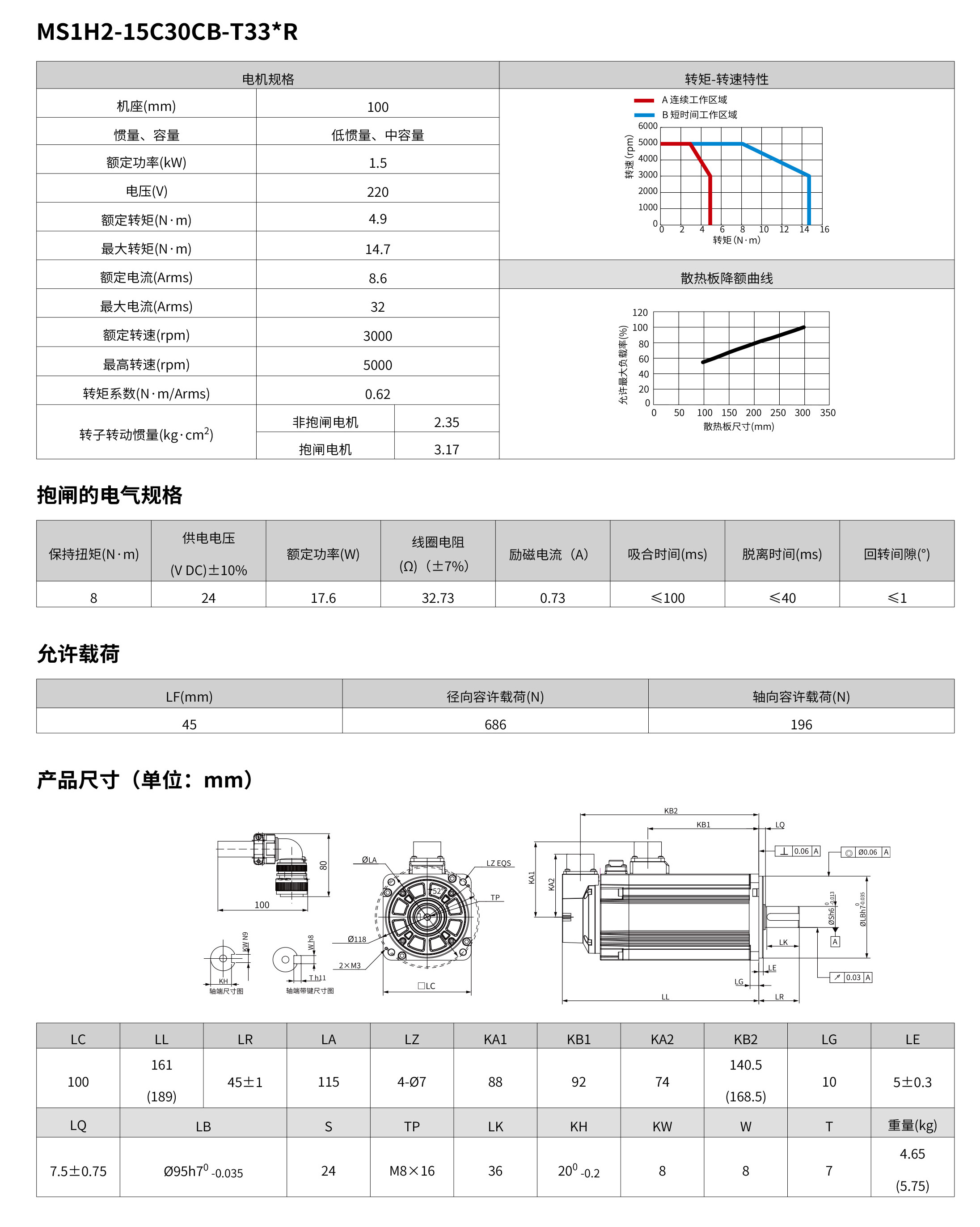 MS1H3(nN=1500rpm,nmax=4500rpm)系列额定值规格