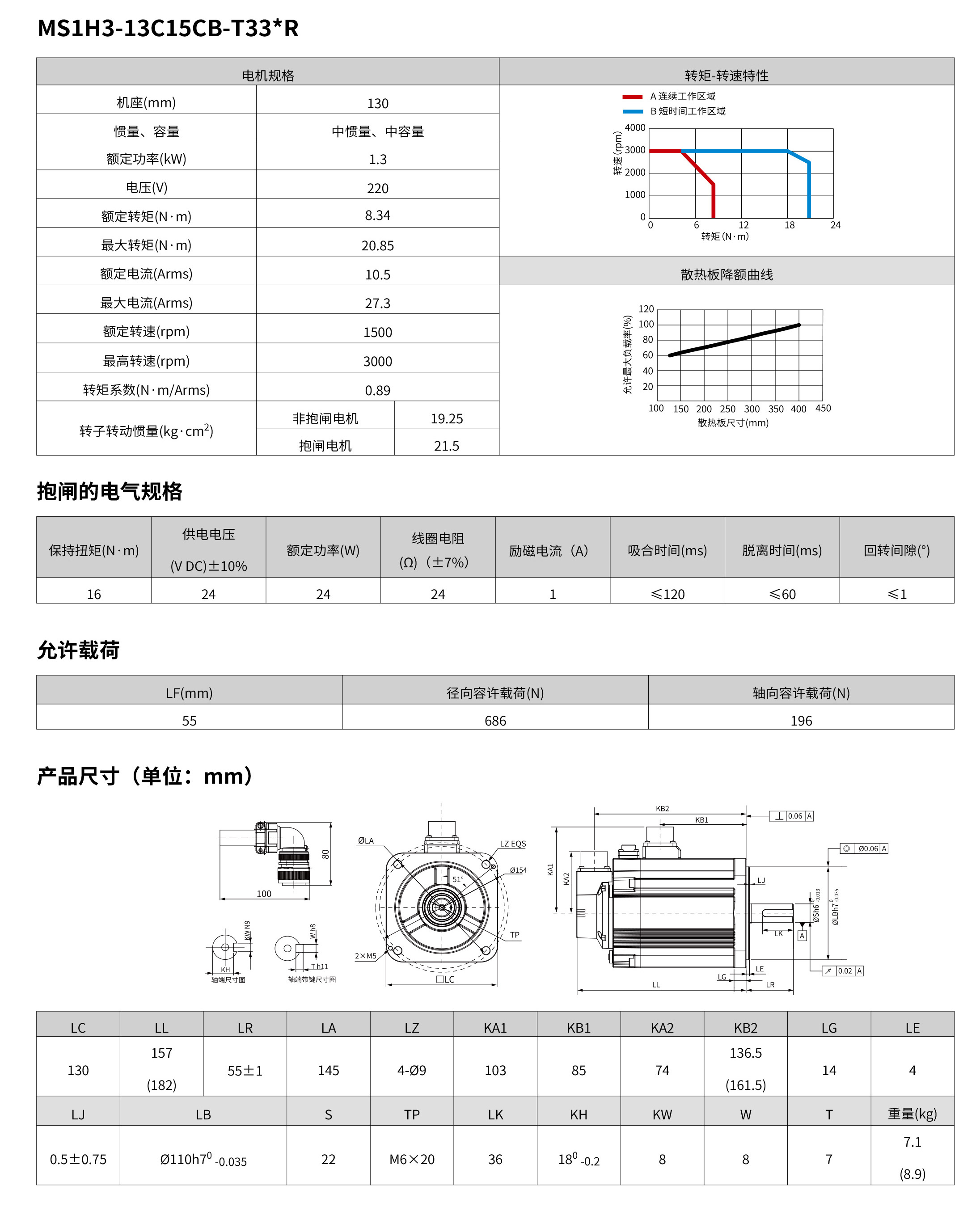 MS1H1(nN=3000rpm,nmax=7000rpm)系列额定值规格