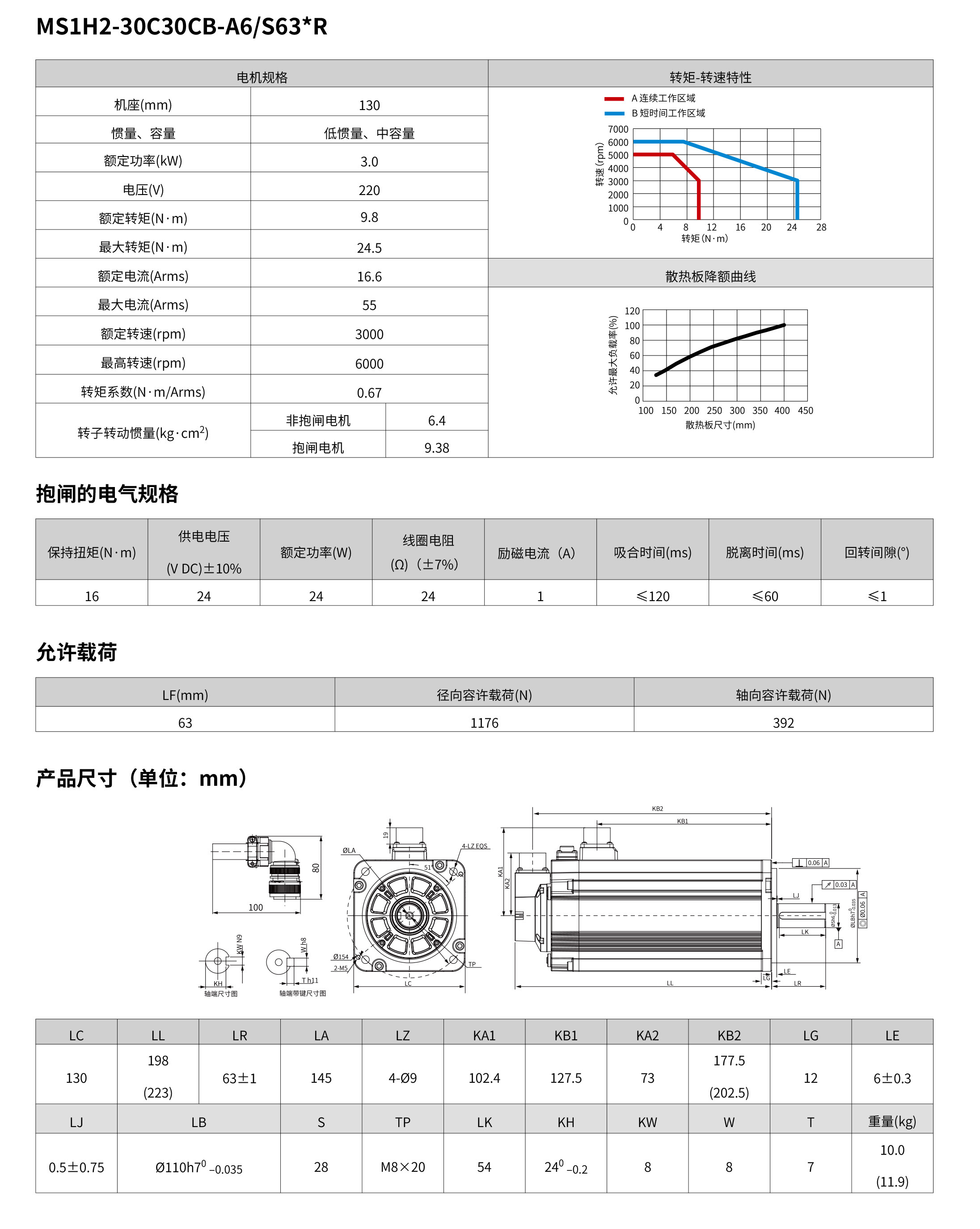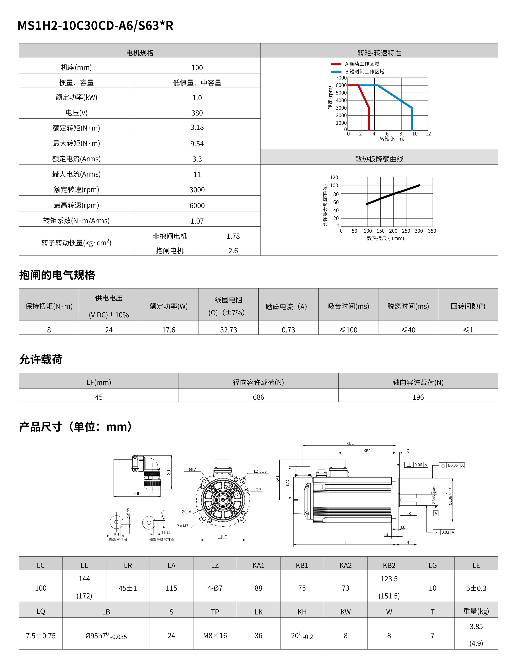 MS1H1(nN=3000rpm,nmax=6000rpm)系列额定值规格