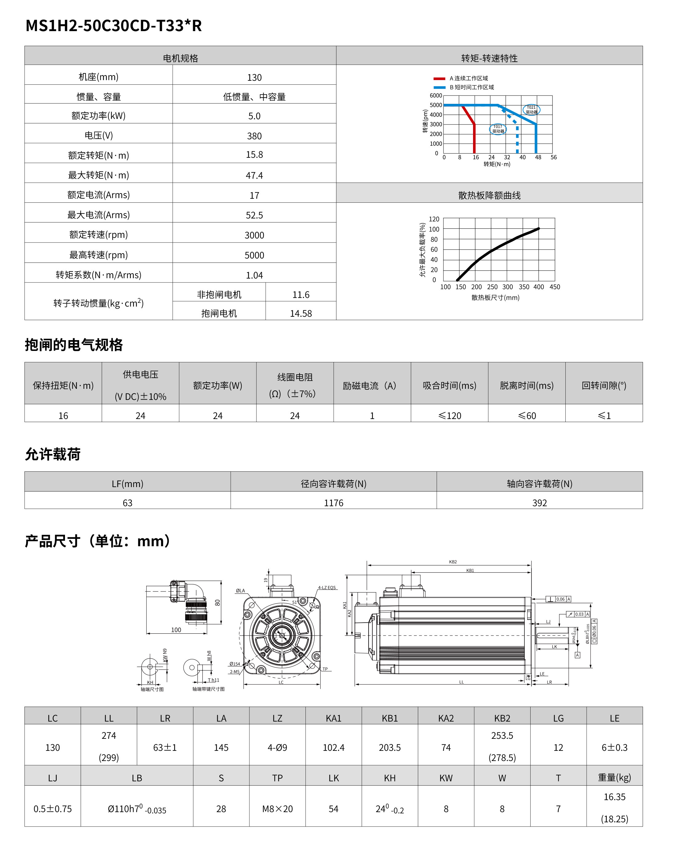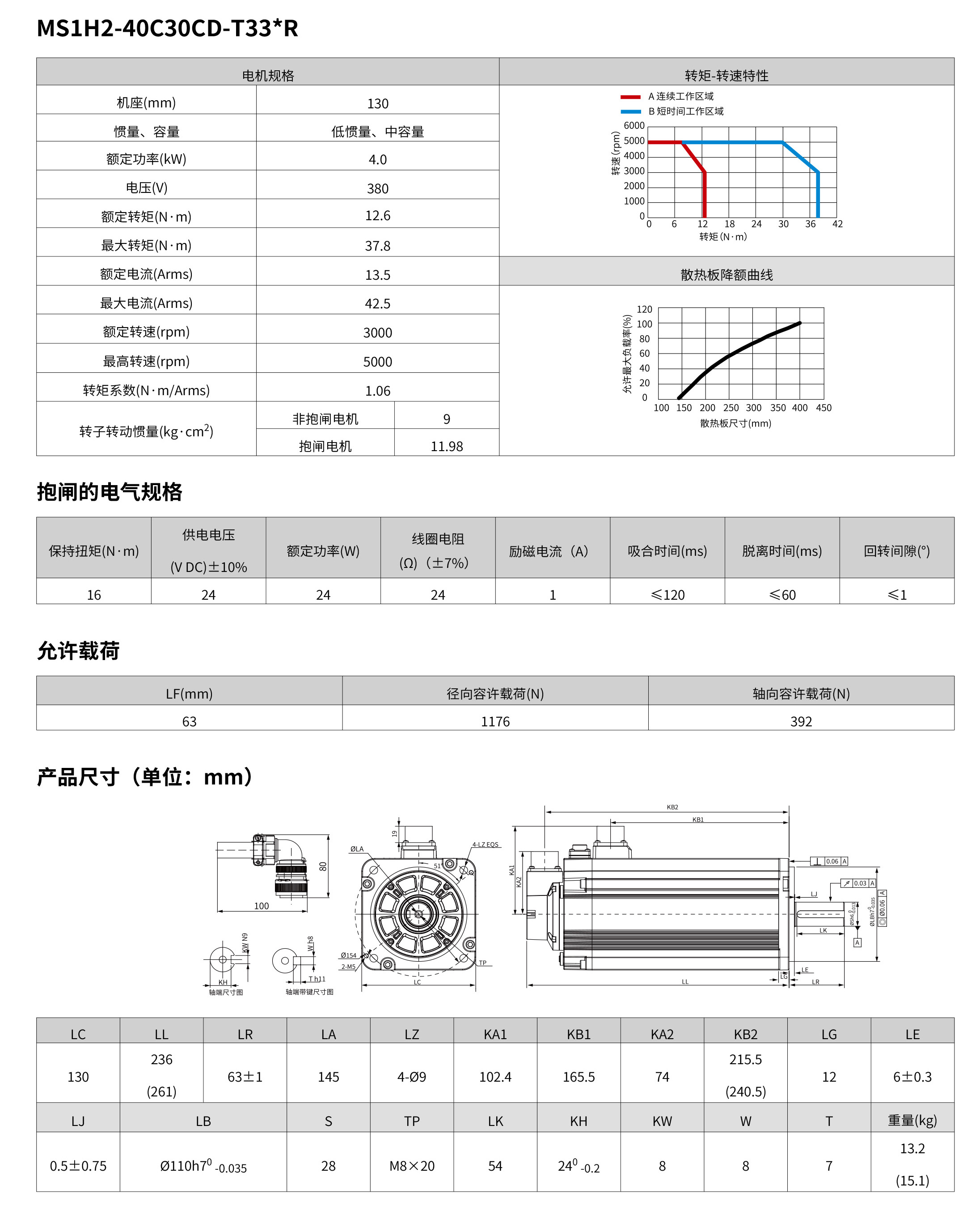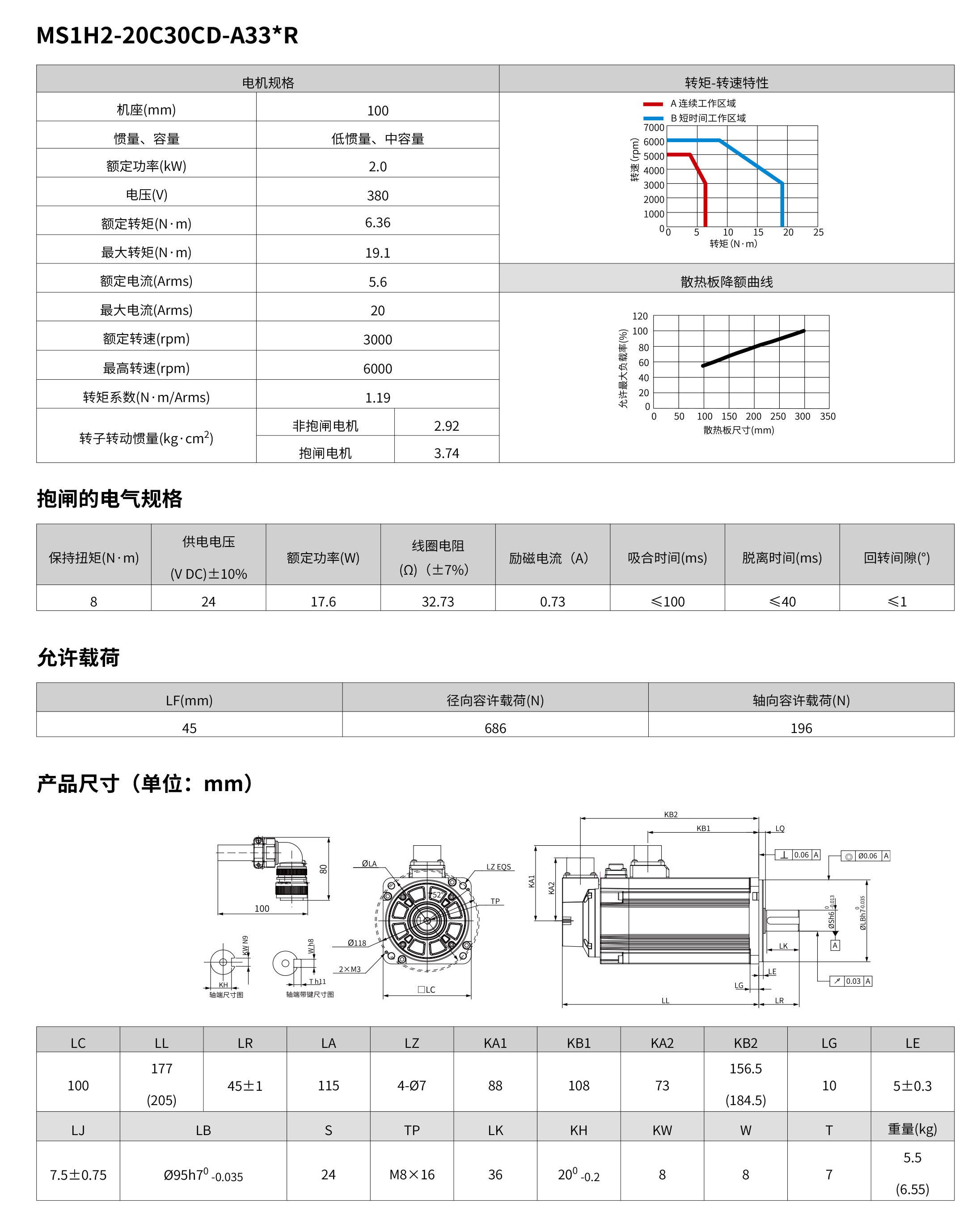 • 更高转速:MS1H1 和 MS1H4 (40/60/80 机座 ) 最高转速从 6000rpm 提升到  7000rpm;MS1H2 机型最高转速从 5000rpm 提升到 6000rpm;MS1H3(130/180  机座)最高转速从 3000rpm 提升到 4500rpm(说明:带 26 位 &23 位编码器机型)