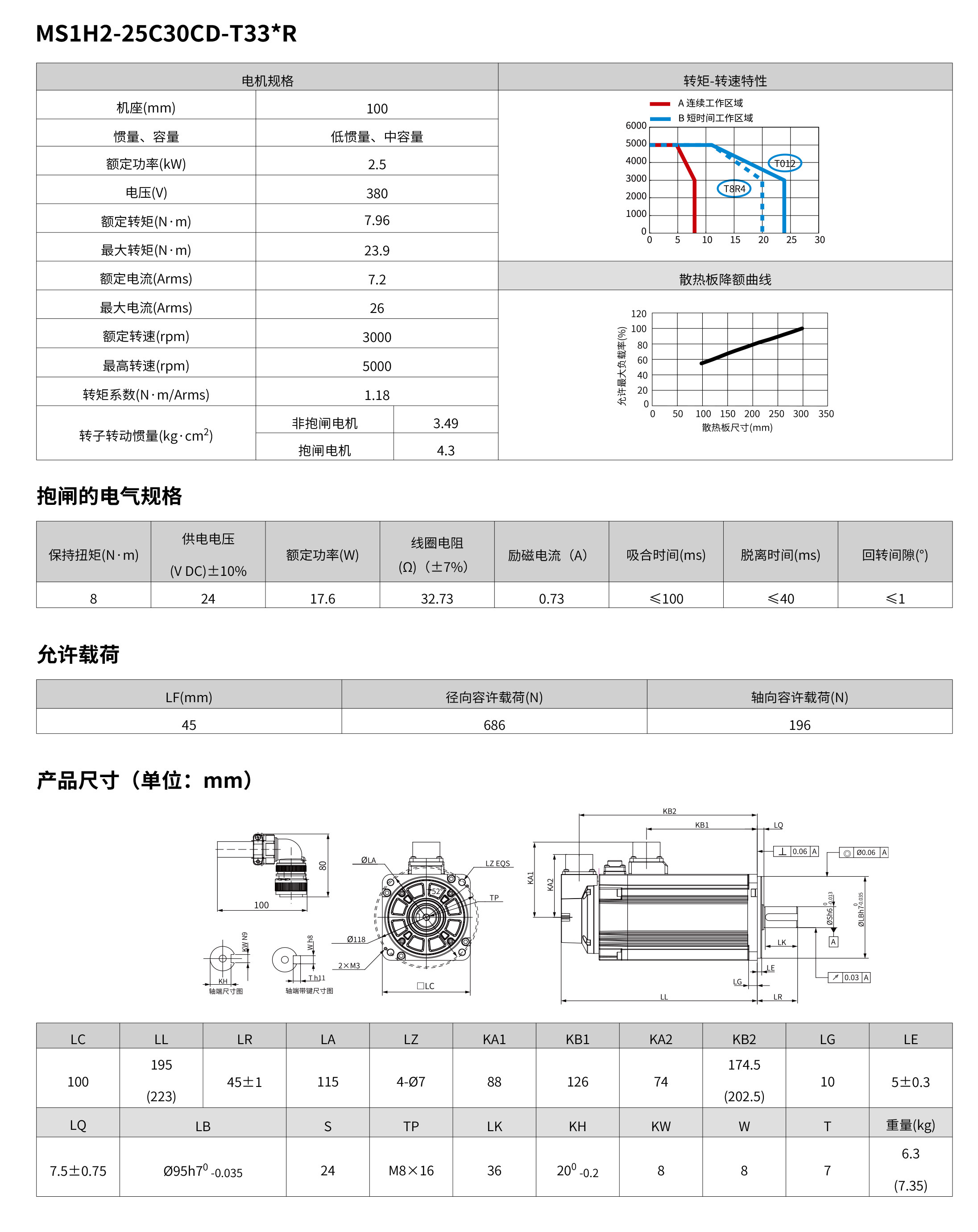 MS1H1(nN=3000rpm,nmax=7000rpm)系列额定值规格